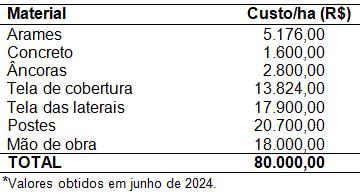 Tabela 1. Custo de materiais necessários para o envelopamento de 1 (um) hectare de pomar de macieira*.